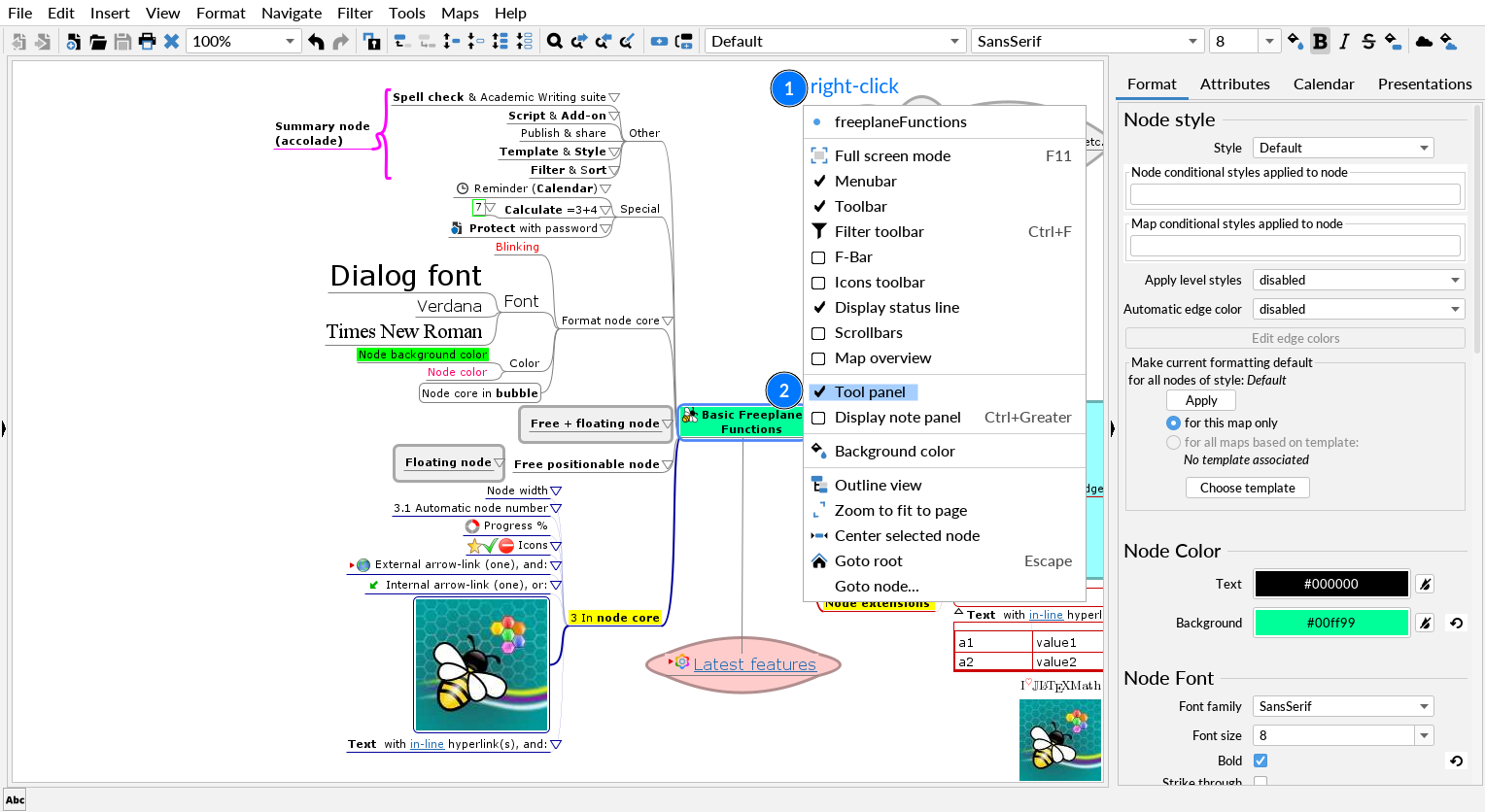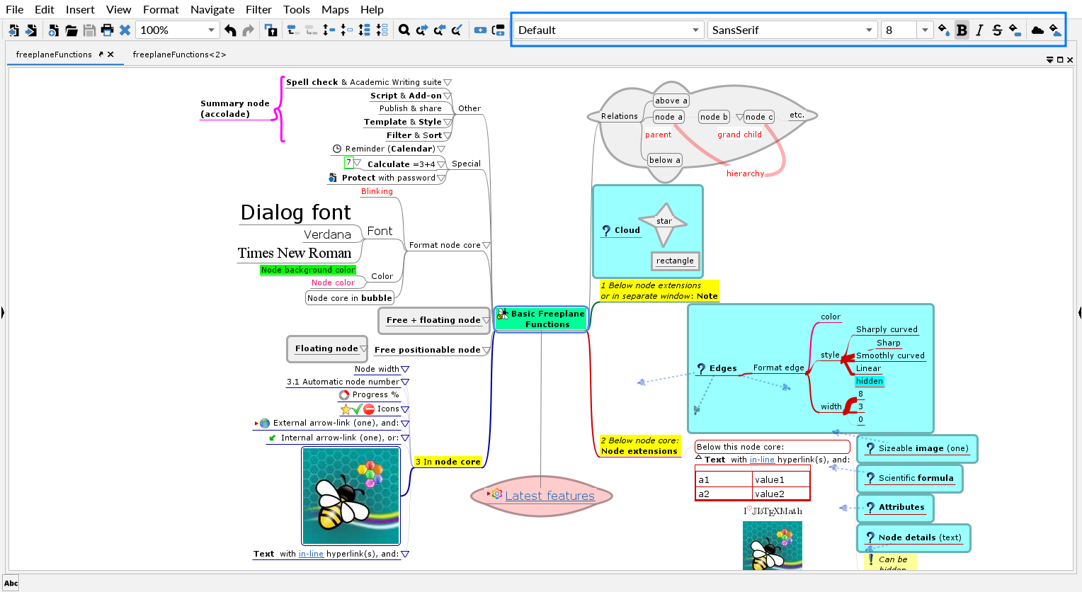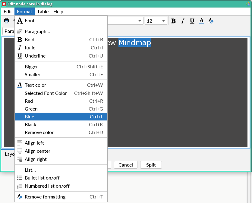 In addition to formatting an entire node, it is possible to format each character/word in the node.